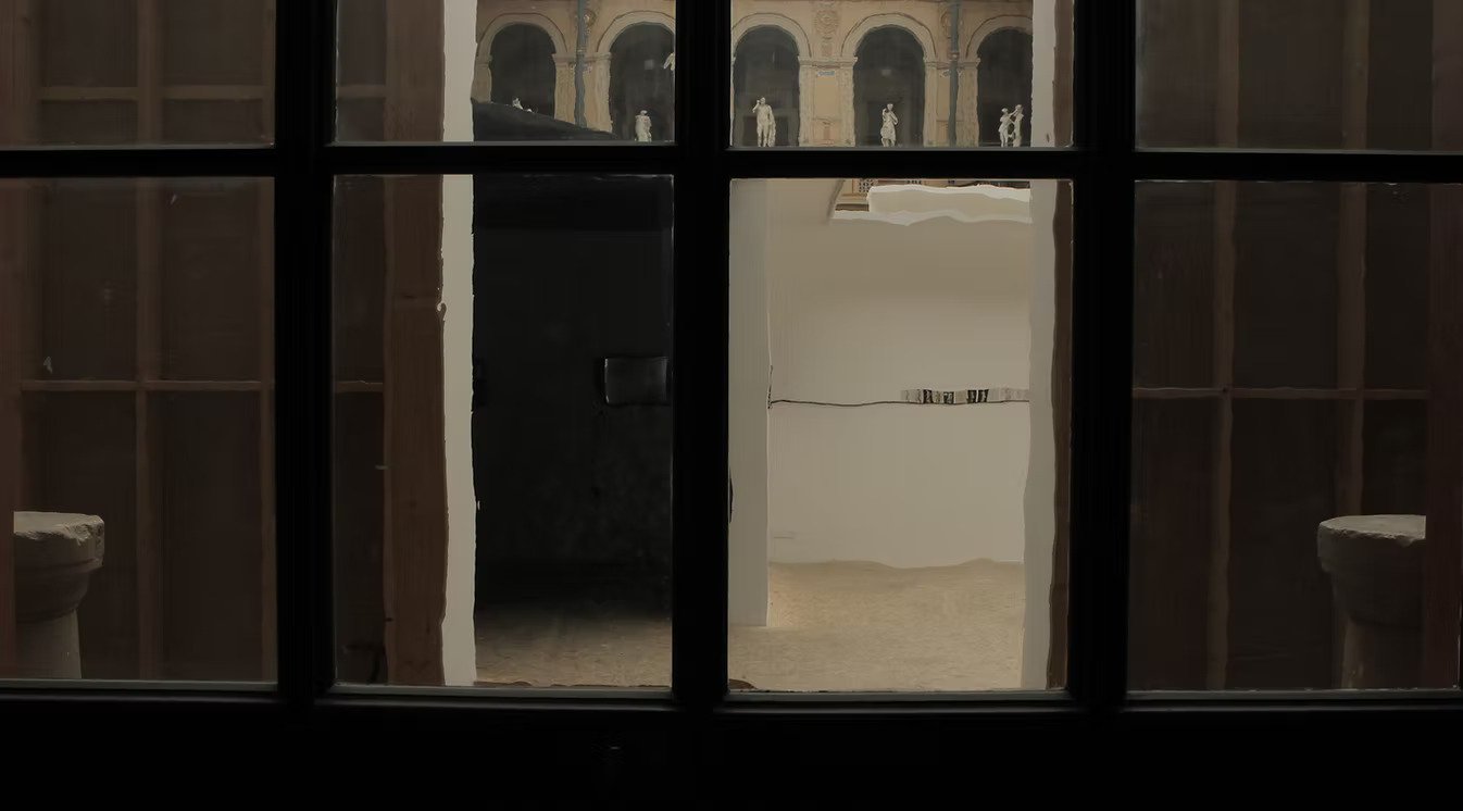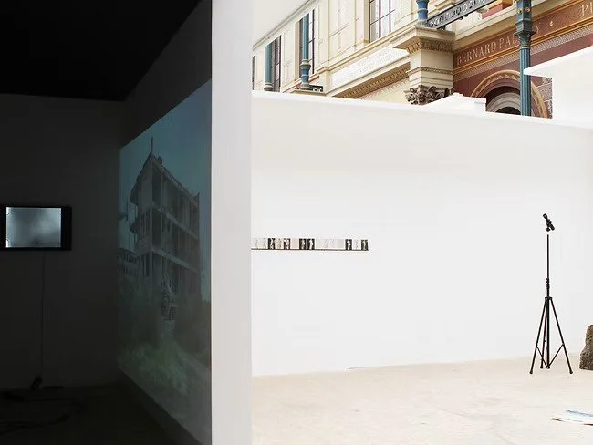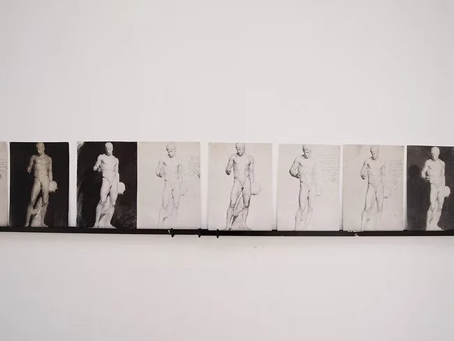 The installation appears in response to the context both historical and physical - that of the space of Cour Vitréé, once a harbor for plaster cast copies of Antiquity statues. Consisting of documents, such as 7 channel video-installation, found objects, research atlas reminding that of Aby Warburg, as well as an environment that directs the viewers attention to certain rhymes and connections between different spots of the inside and outside of installation. There is also a dispositif of perception the plaster cast copy of Discus thrower at rest, a dispositif which translates distant vision into skin sensation which lasts depending on the viewers decision.