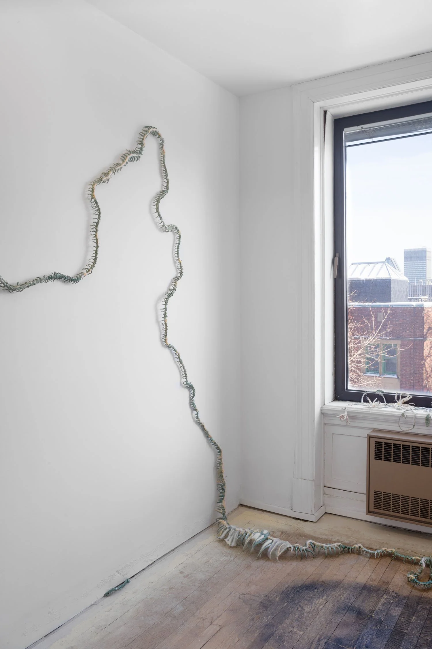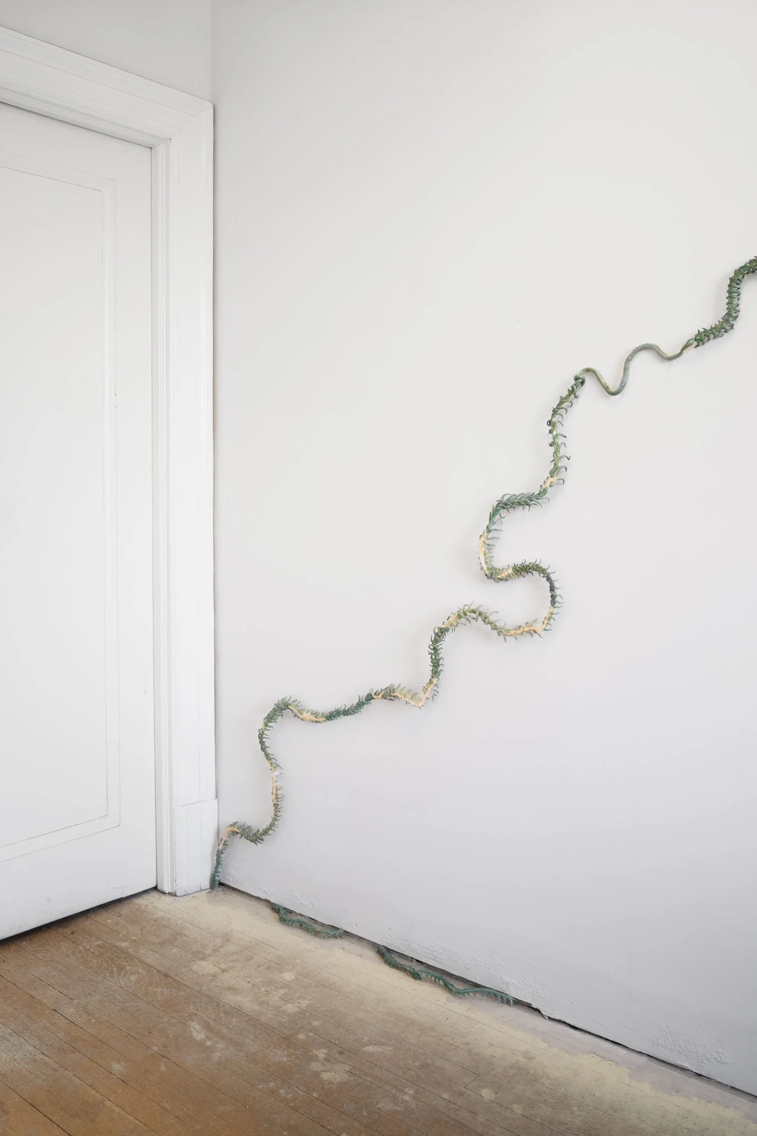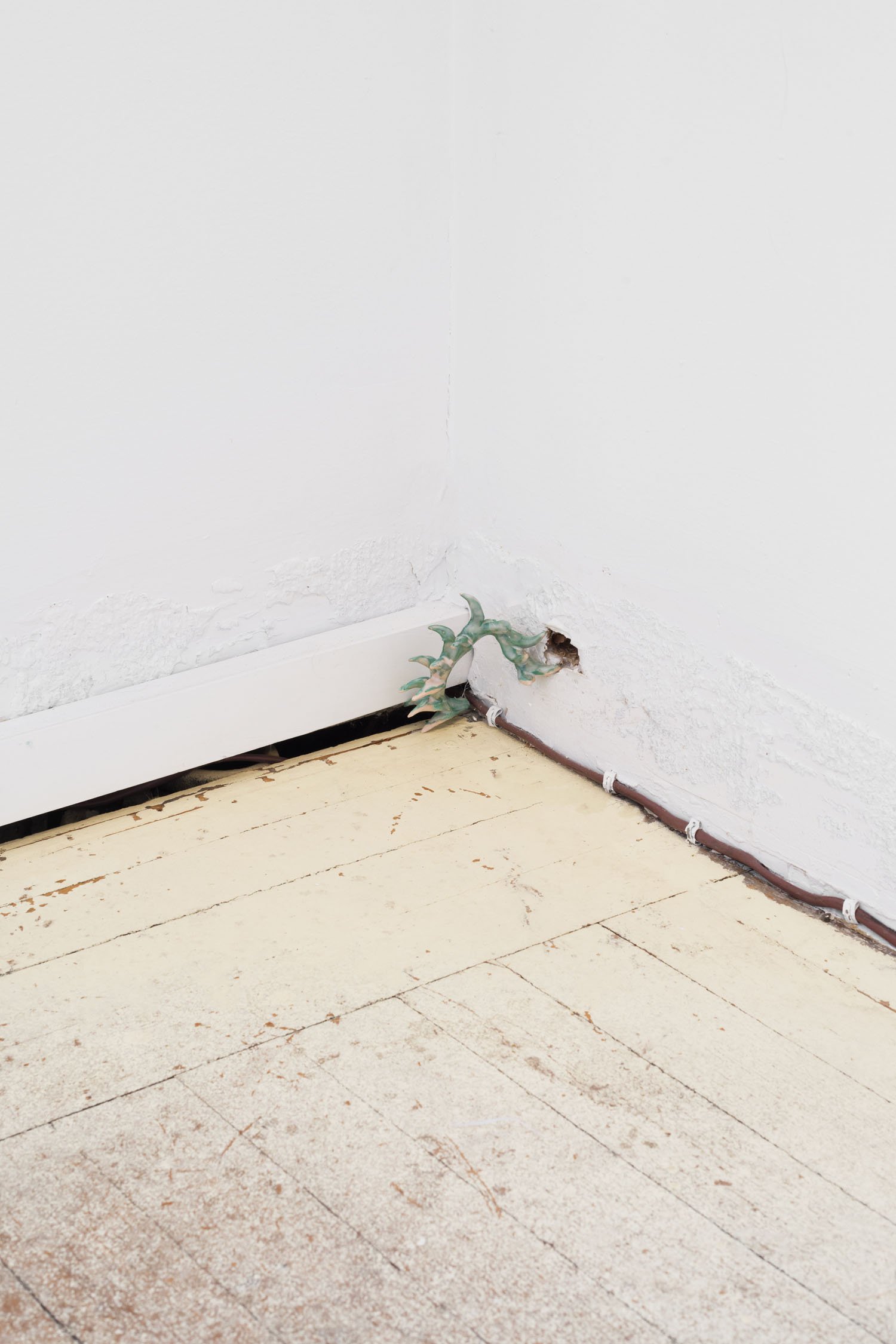 In the smallest room of this mansion, Elisabeth Perrault gathers and lays down her torments. Opaque, solid, yet fragile and breakable. Digesting her fear of being swallowed by her own work, she turns it into a broken daisy. She swallows her anxiety about running out of time by taking her time, by inhabiting the complimentary strengths and weaknesses of her materials. Some things break when they’re dropped or crushed. Others when you tear them.