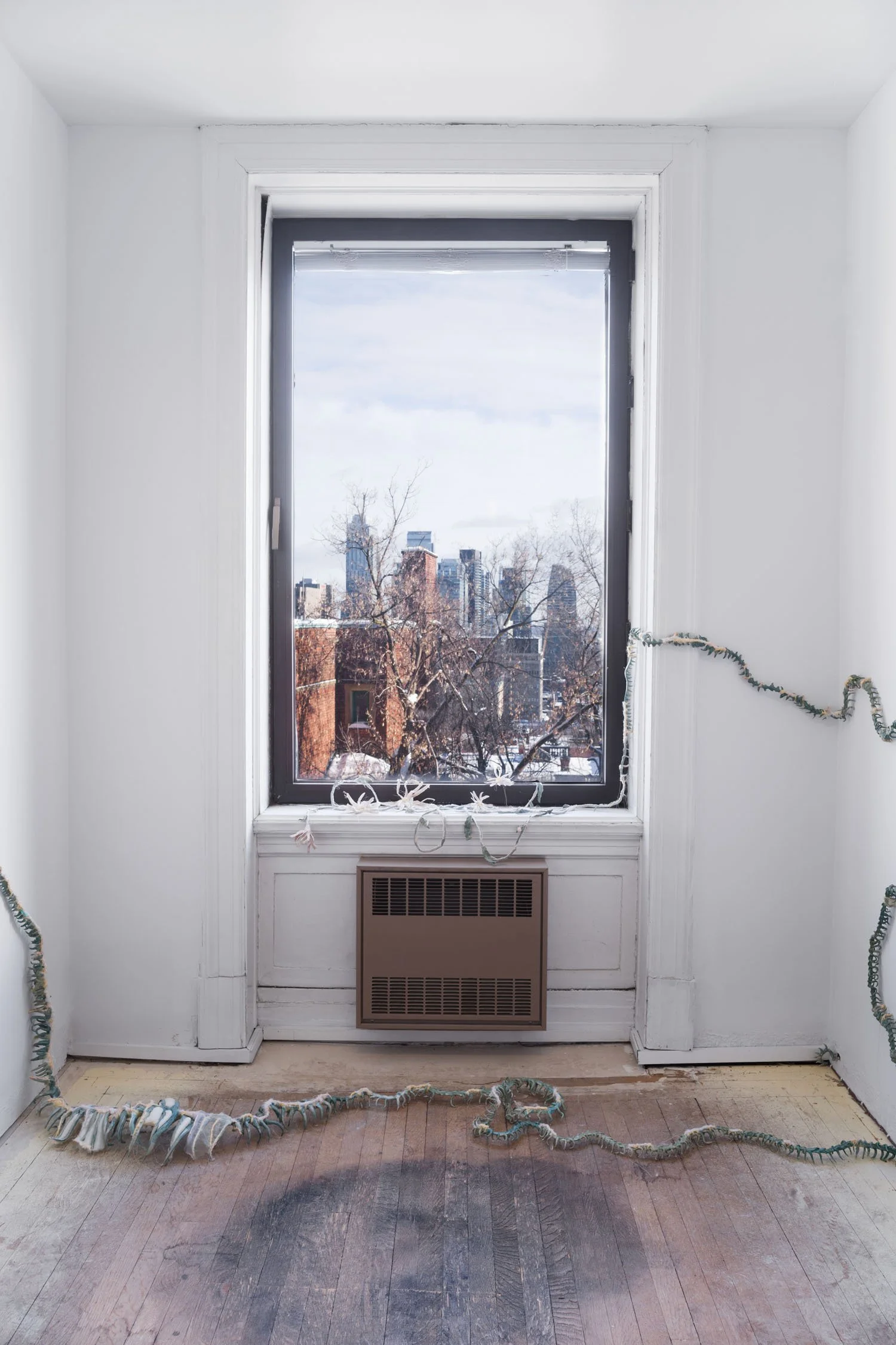 Elisabeth’s fears moved from her stomach to her hands to my edges. Digested. My twisted spine wraps its way up the wall of this tiny room, too small to contain my inse- curities. It climbs above my head, invasively. I fall to the ground, and I find myself. I recoil, spin, grapple, and rise to the surface, only to find myself face-to-face with the window, gasping. My worries overflow, unfurl, they bloom. They’re beautiful.