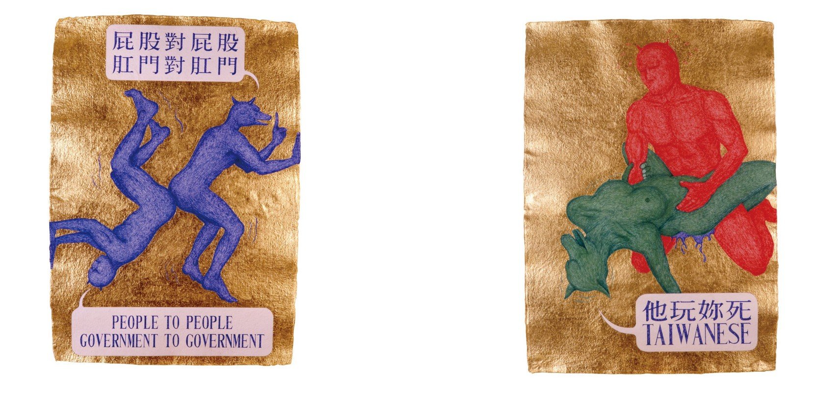 Right: The Cynic: PEOPLE TO PEOPLE GOVERNMENT TO GOVERNMENT. Left: The Cynic: TAIWANESE