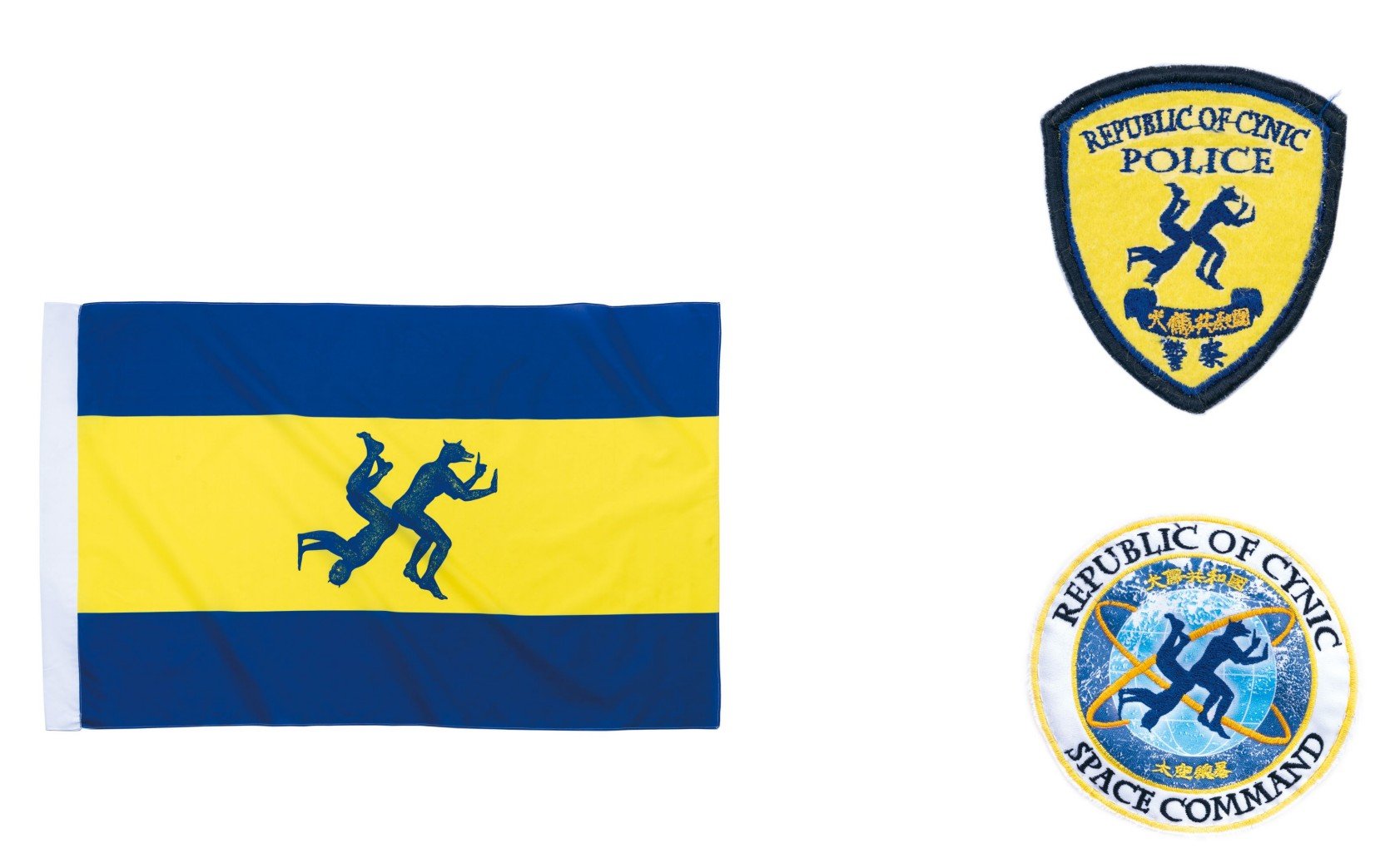Yao Jui-Chung: Republic of Cynic (R.O.C.). Left page: The Republic of Cynic national flag. Right page: The Republic of Cynic Police arm badge (top) / The Republic of Cynic Space Command arm badge (bottom)
