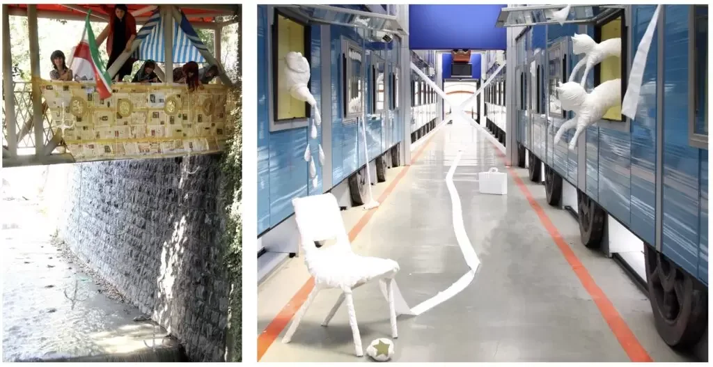 The urban interventions by the Tehran Carnival might be considered as belonging to a different experimental paradigm in post-studio, post-gallery practices, which doesn’t comprise engagement with specific issue-based or discursive content but is marked by relying on the inherent potentialities of the urban space and attempting to surprise and engage the audience, this time with whimsical, fanciful ideas. They mainly seek to dispose of the barriers and complications of the formal art world and at the same time challenge the urban surroundings. Their works hover between fine arts and street art, as they contain some of the characteristics of both models. Their spontaneous approach which did not seek to be licensed and/or sponsored, together with their direct interaction with the city space, is similar to the pattern of street art, while the fact that they are contemporary artists who once studied art, frequented art galleries and artistic communities, and got inspired by ideas shared in the global contemporary art community connects them to the art world.