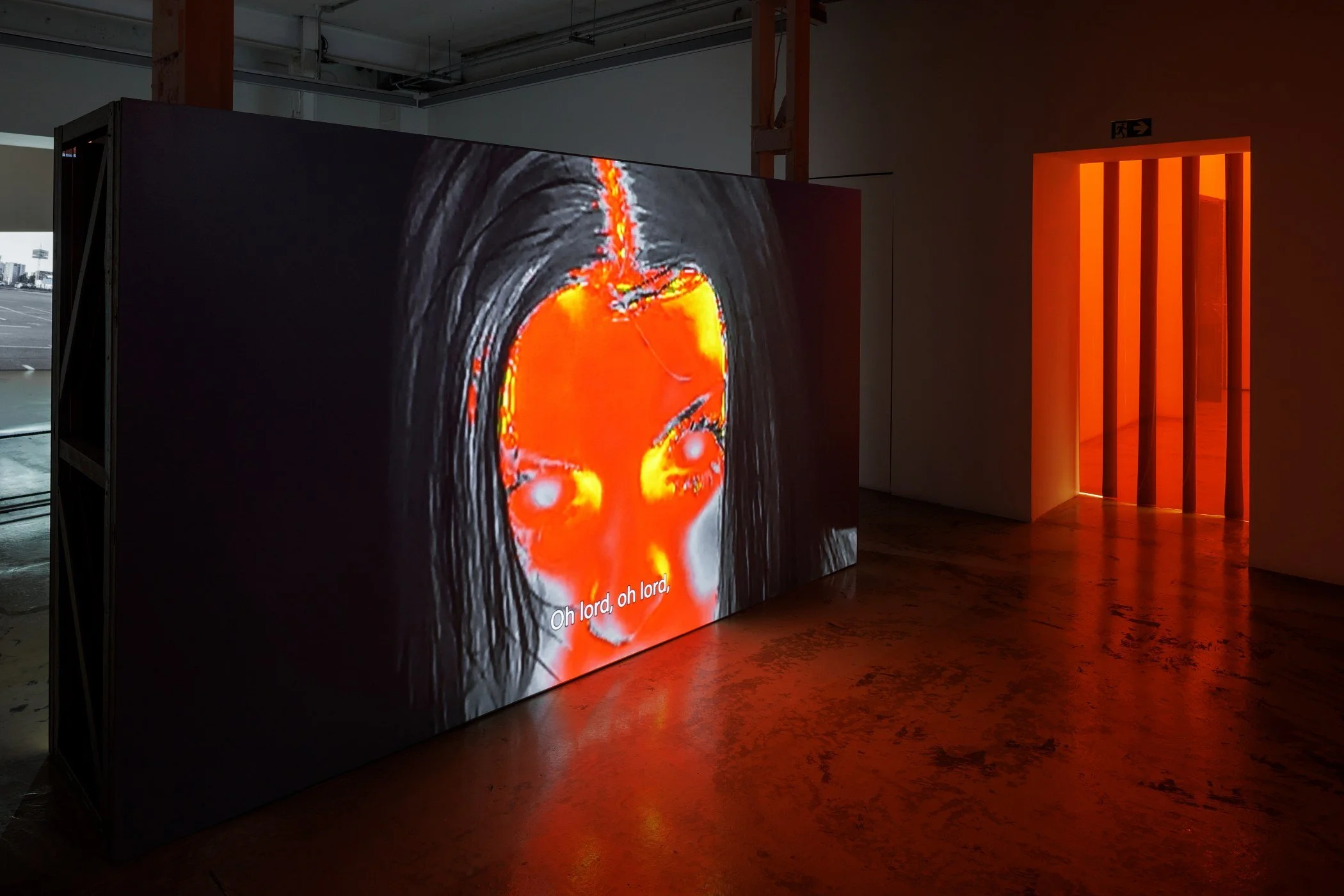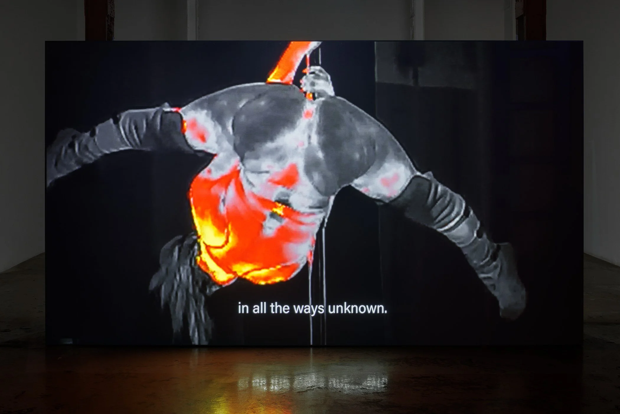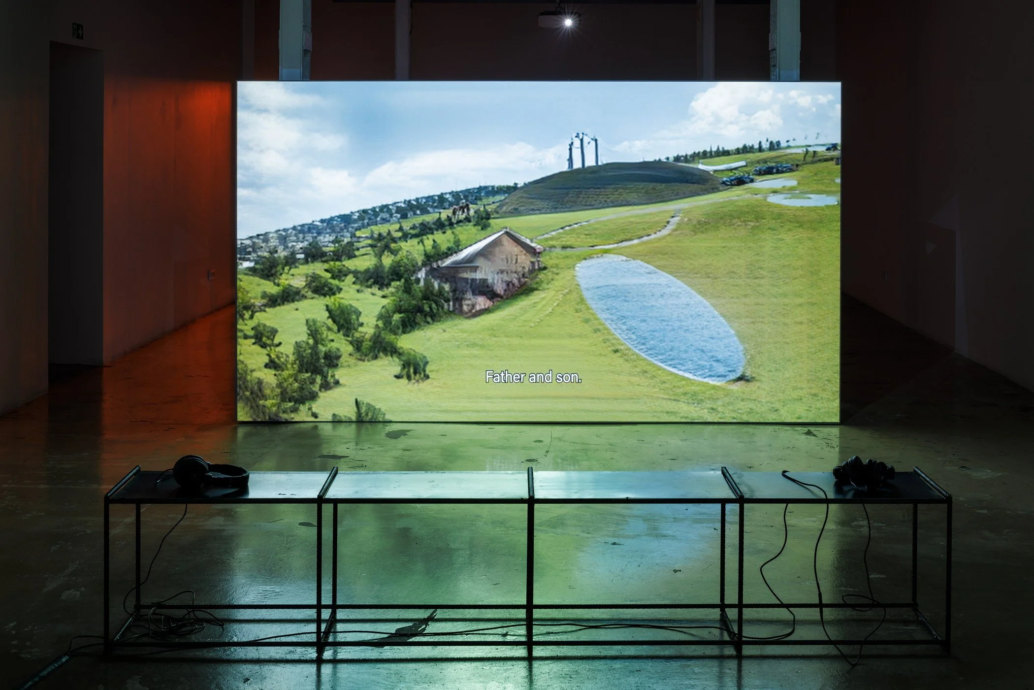 At last, the three video works included in the exhibition are manifestations of a long-term research project focusing on the Senukai-Empire founder and his precarious spiritual lessons hinged on individualism through DIY culture. Produced over the past three years, they belong to the same lore and sometimes employ the same editing effects or image types — most notably thermal imaging. If they seemingly share the same main character(s), it is the text that ultimately ties them together. Weaving material authored by the founder himself, testimony from former Senukai workers, poetry, and autobiographical accounts, the script is, in itself, a liquid collage. A score to mourn ideas we once held onto: from that of the nation state to the hope for a better future.