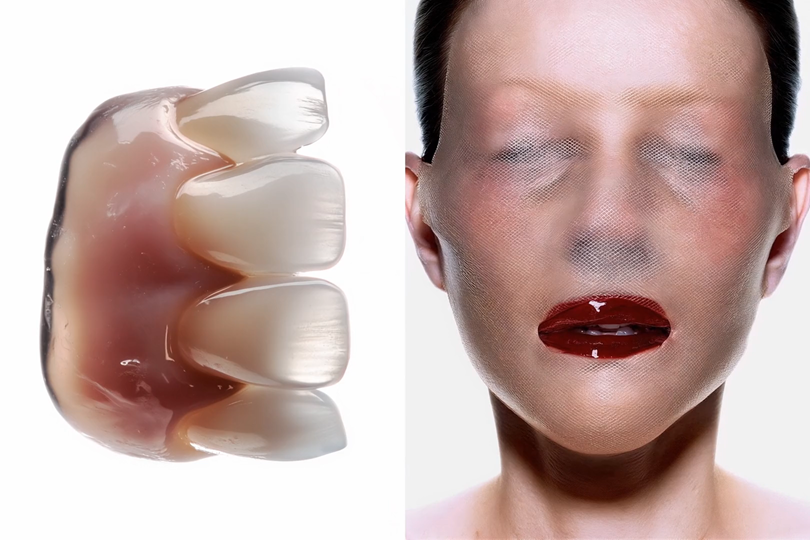 Radiance is reframed as an engineered effect; moisture, gloss, and care practices become performances of wellness and control. Detached bodily materials shift from intimate to uncanny, reflecting on the thresholds between adornment and decay. Combining cinematic horror with commercial aesthetics, Surface Latency positions beauty as both spectacle and mask, revealing its latent monstrosity.