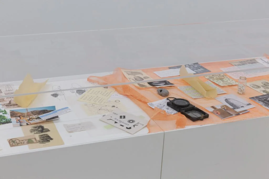 The title Telling the Bees refers to an old rural custom found in multiple cultures, in which people would inform bees of significant events like births, deaths and departures, believing that failure to do so could lead the bees to abandon their hive. In Goni’s work, this ritual becomes both a conceptual framework and an ethical proposition: an invitation to include nonhuman life within systems of meaning, mourning, and continuity. A woven basket known as a smarologos, gifted to the artist years ago on the island of Ikaria, functions as a core object within the installation. As curator Nadja Argyropoulou notes the smarologos acts as a carrier, vessel, and container of relations and recalls Ursula K. Le Guin’s Carrier Bag Theory of Fiction, proposing an alternative to heroic narratives in favor of stories structured around holding, gathering, and sustaining.