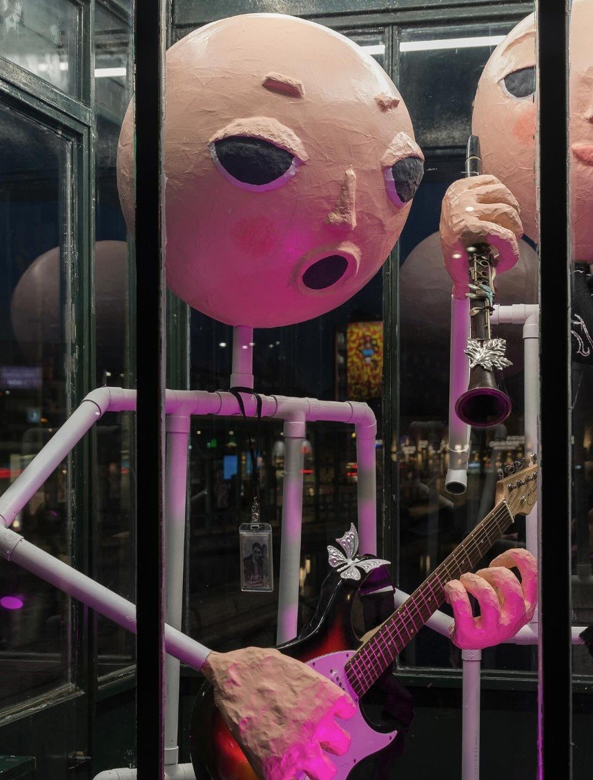 In his installation, Misha creates a fictional musical group which consists of two characters that resemble an animatronic frame. A teenage rock band is a well-known romantic construct, the embodiment of freedom, the dream of many teenagers is to be famous independent musicians. The study of such subcultural phenomena is a frequent object of interest in Misha’s artistic practice.