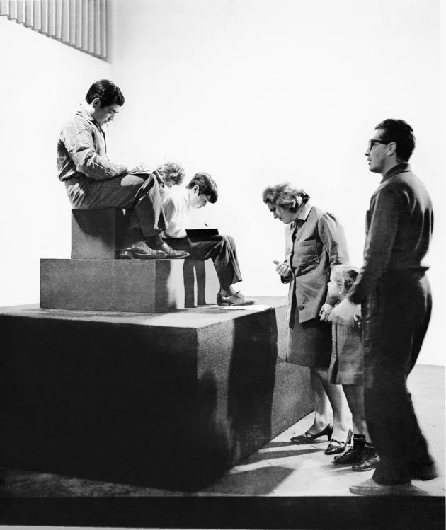 Experiencias ‘68 was another experimental exhibition opening up the art institution to participation and political critique under the repressive regime. It also included a work from Oscar Bony, La Familia Obrera (Blue-Collar Family), which was an installation consisting of an actual working-class family seated on a pedestal. The authorities censored the controversial work which resulted in artists publicly destroying their works and a declaration against censorship. In these events, participatory art did not just symbolically engage the public but triggered real political conflict and censorship. The experimental theater of the 1960s and 70s was tied to large political ideologies and a loss of trust in institutions. In contrast, today's woke culture increasingly functions as a form of moral theater performed in online and public spaces, preoccupied with deplatforming individuals.